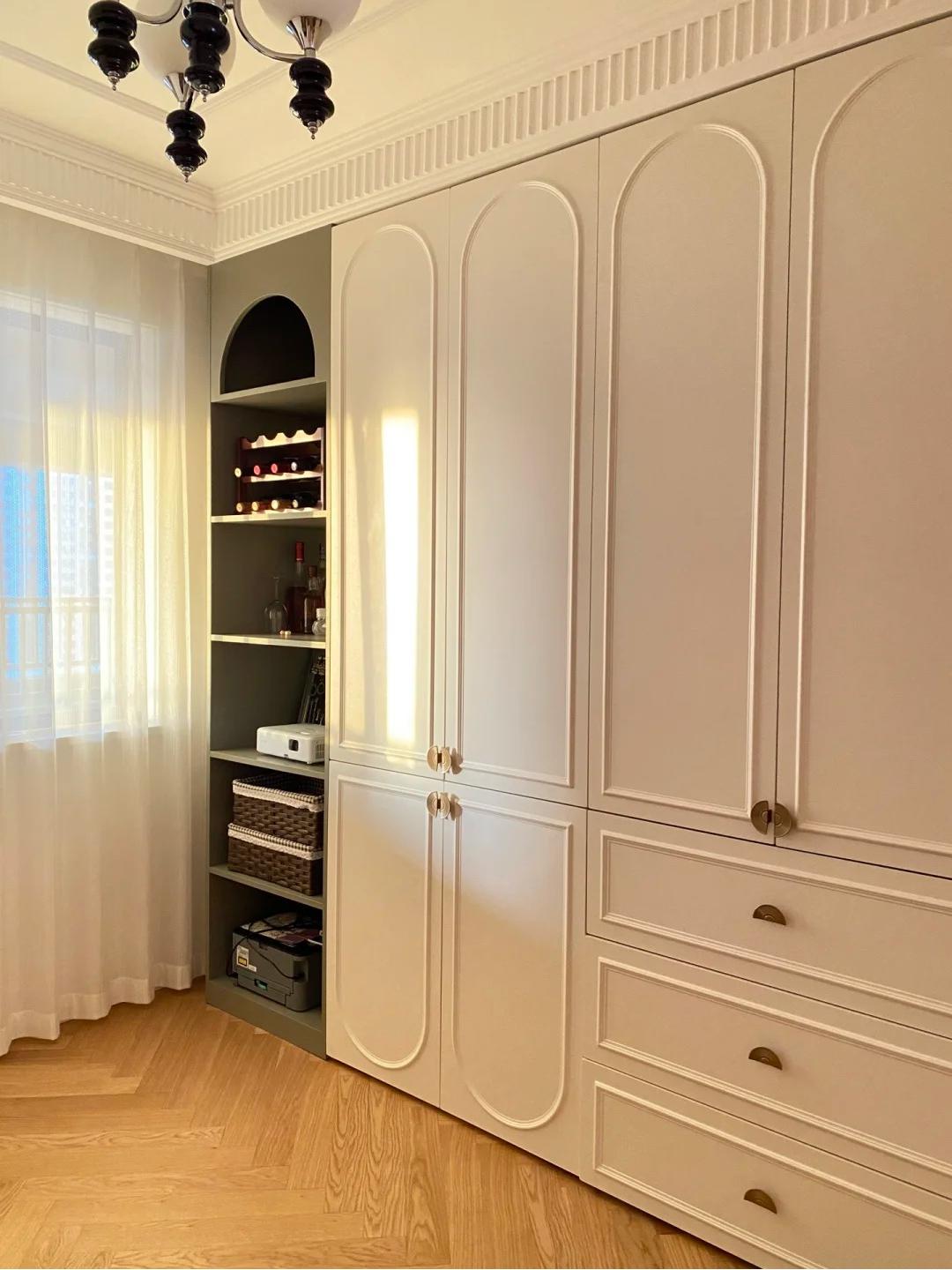 顶天立地的奶油系法式衣柜,太迷人了!搭配超白长虹玻璃,透光不透影,氛围感直接拉满!