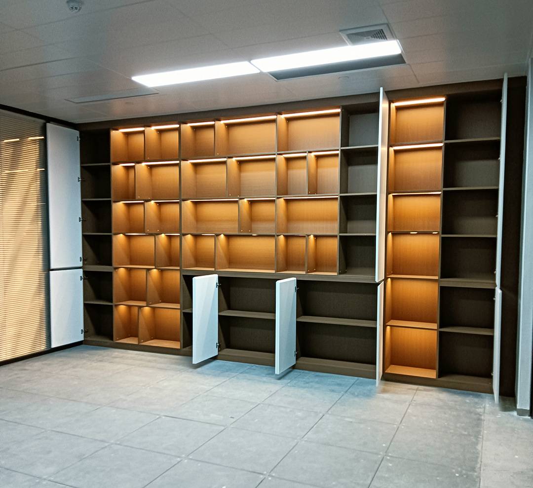 广州枫格家具在办公室背景柜的设计和生产有多年经验。随着现场企业家对办公场所的要求越来越高,设计师的思想越成熟越丰富,对一些特别定制的产品提出更高层次的需要及要求。