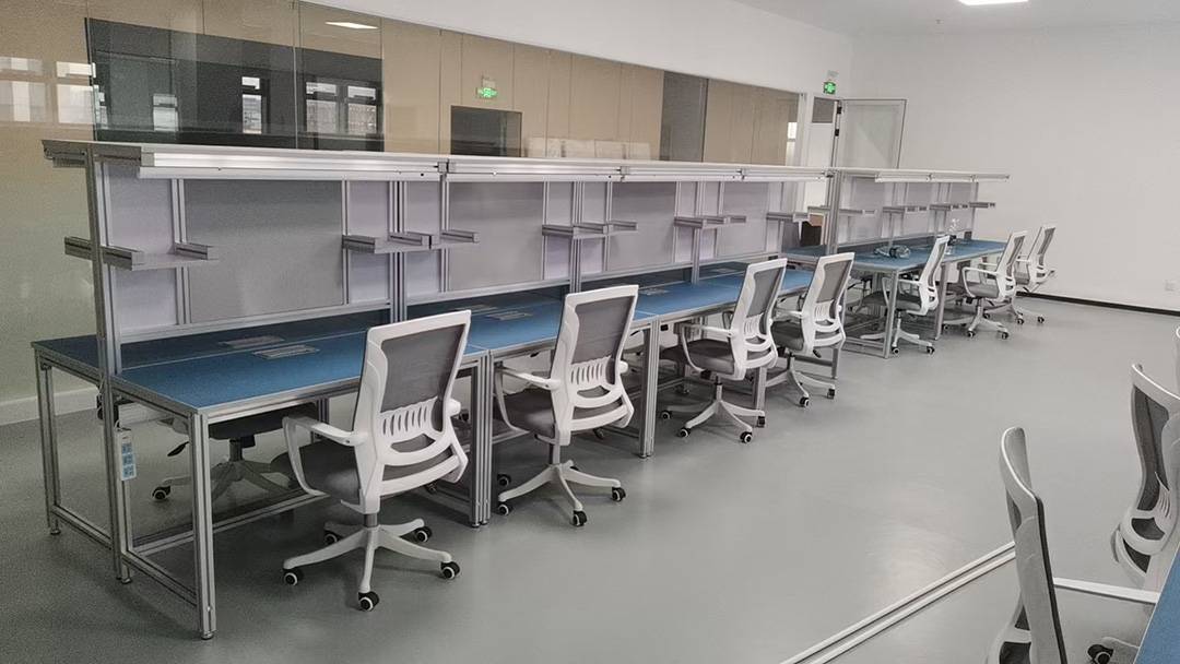 防静电工作台(铝合金方管+密度板+防静电胶+走线盒+铝合金线槽++灯管)