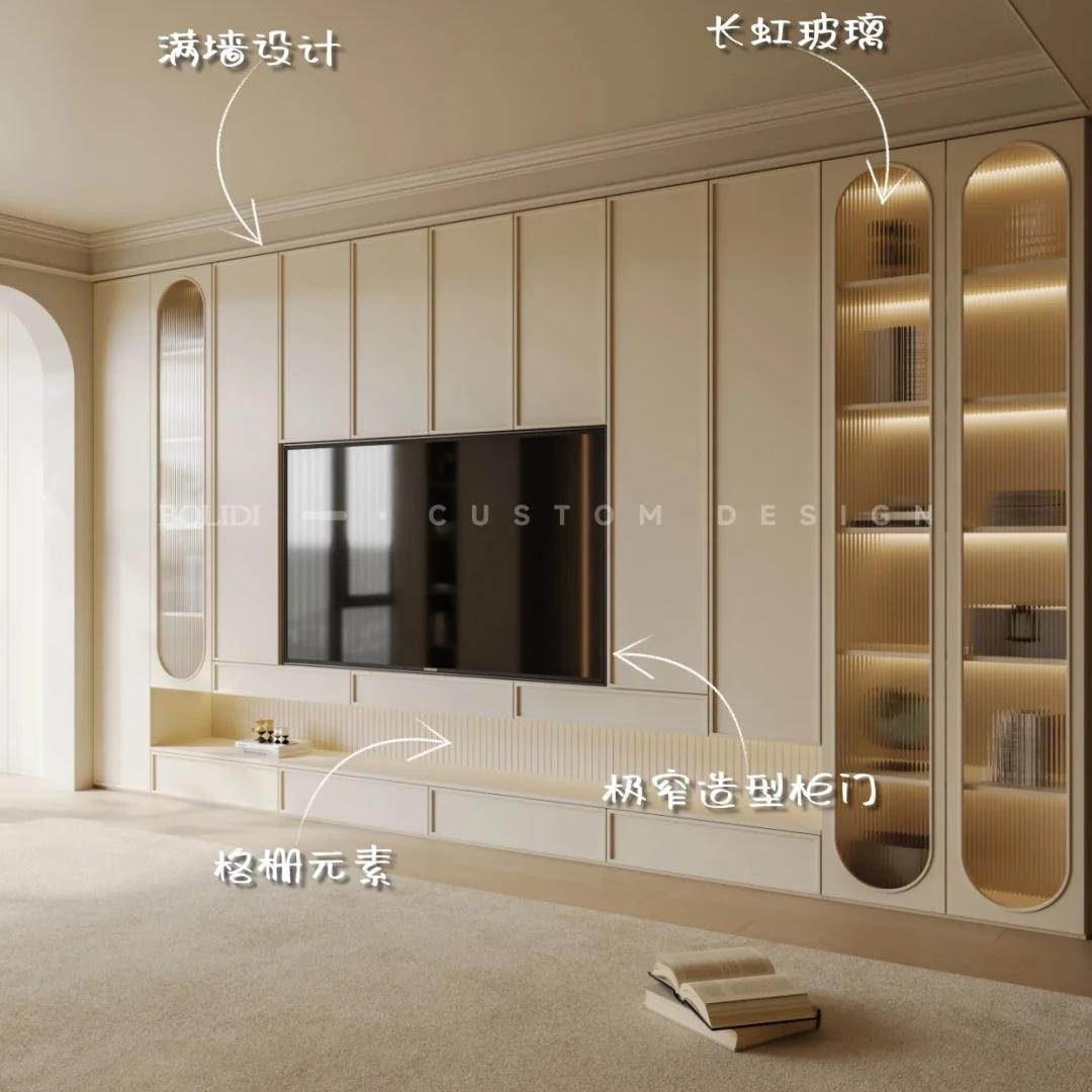 2. 风格适配:电视柜风格需与客厅整体装修风格统一,例如现代简约风多用直线条+哑光面板,新中式风可选实木+格栅元素,轻奢风搭配金属拉手或玻璃柜门。