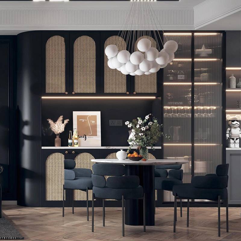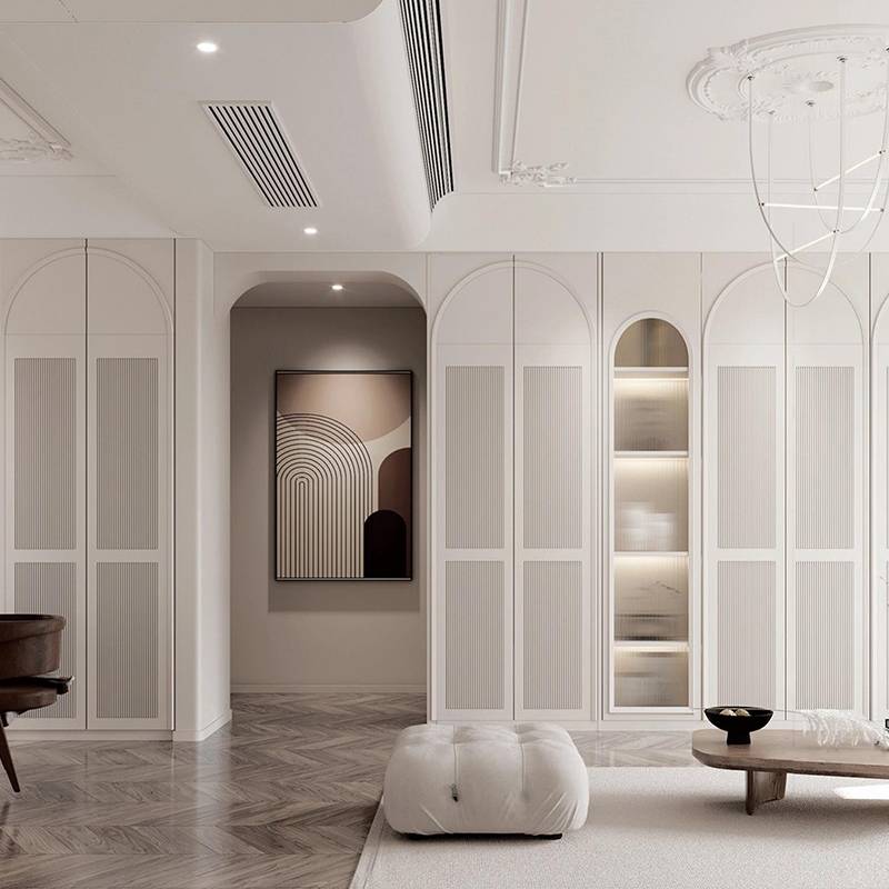 吸塑门板以 PVC 膜真空吸压成型,造型丰富、立体感强,可做欧式、美式等复杂款式。