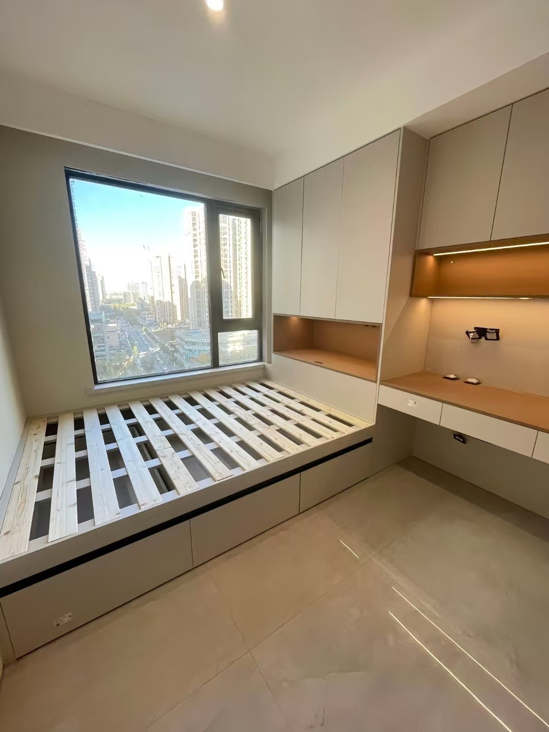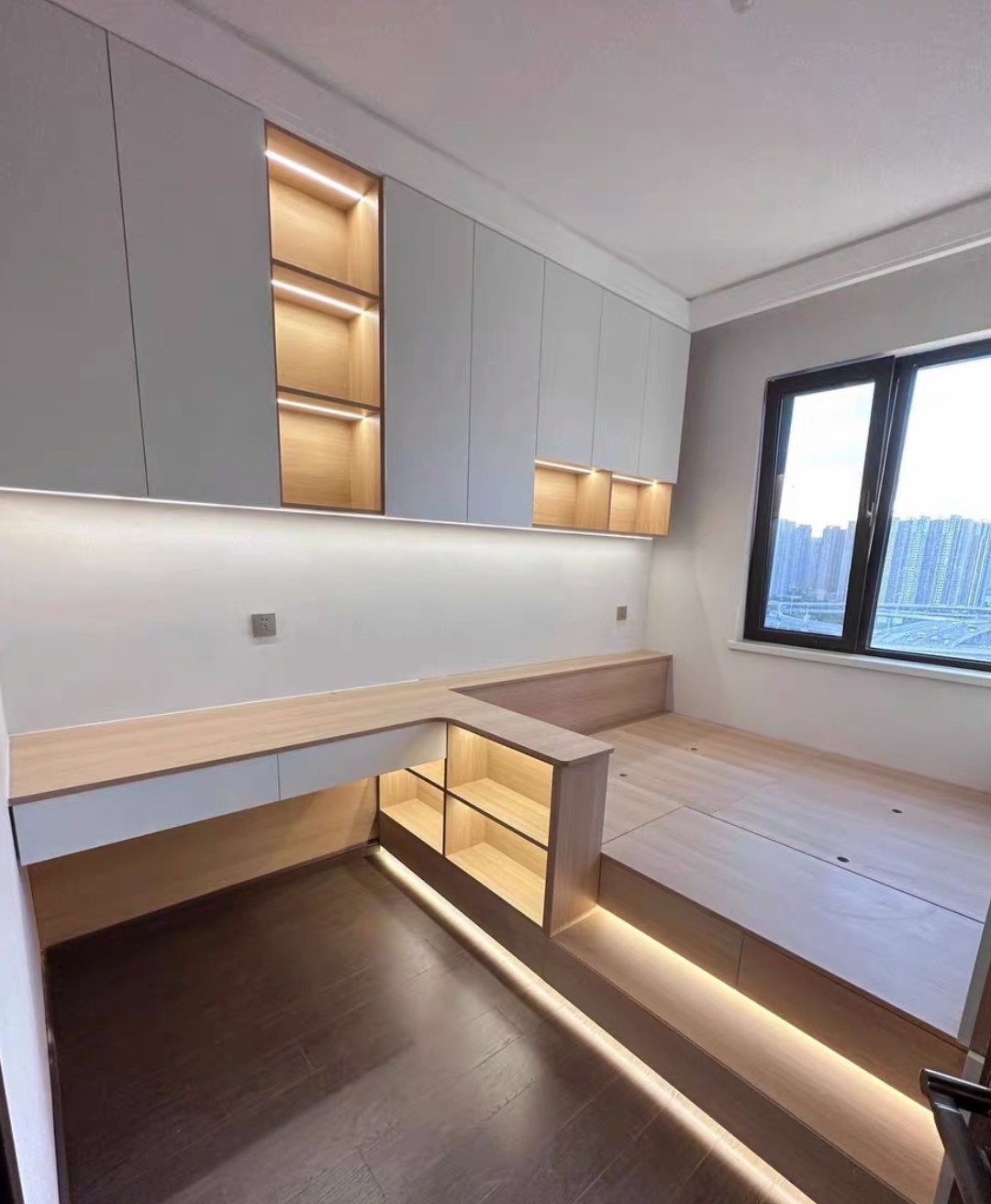 儿童房定制优先安全环保,板材选 E0 级或 ENF 级环保基材,拒绝异味与甲醛隐患;家具边角做圆弧钝化处理,无尖锐凸起,抽屉、柜门加装防夹手阻尼与防倾倒装置,保障活动安全。