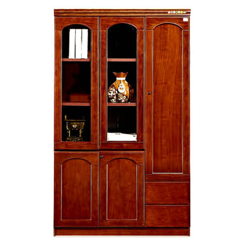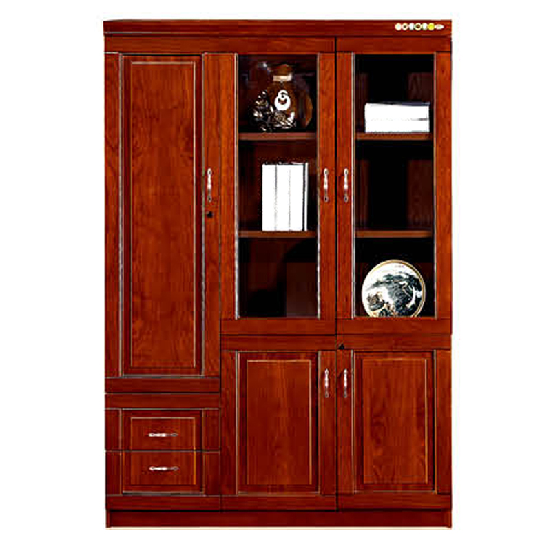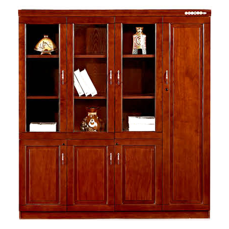 红棕色实木贴皮纹理,经典中式线条,既是文件收纳柜,也是办公室的颜值担当,适配老板室、高管区、接待室,提升整体商务质感。
