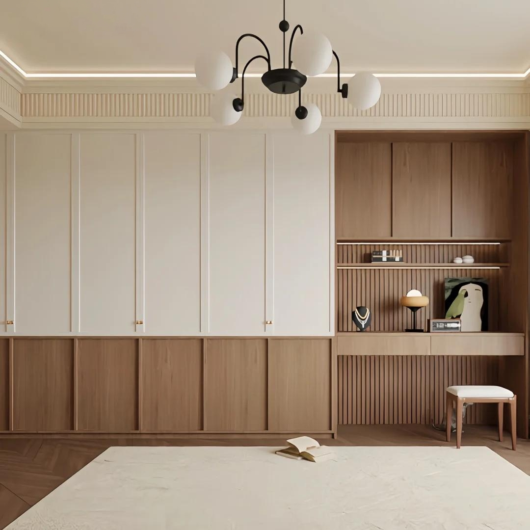 奶油风核心是柔和、温润、低饱和度、无锐角,衣柜设计要兼顾颜值与收纳,同时适配奶油风整体家居调性,以下是分维度关键要求: