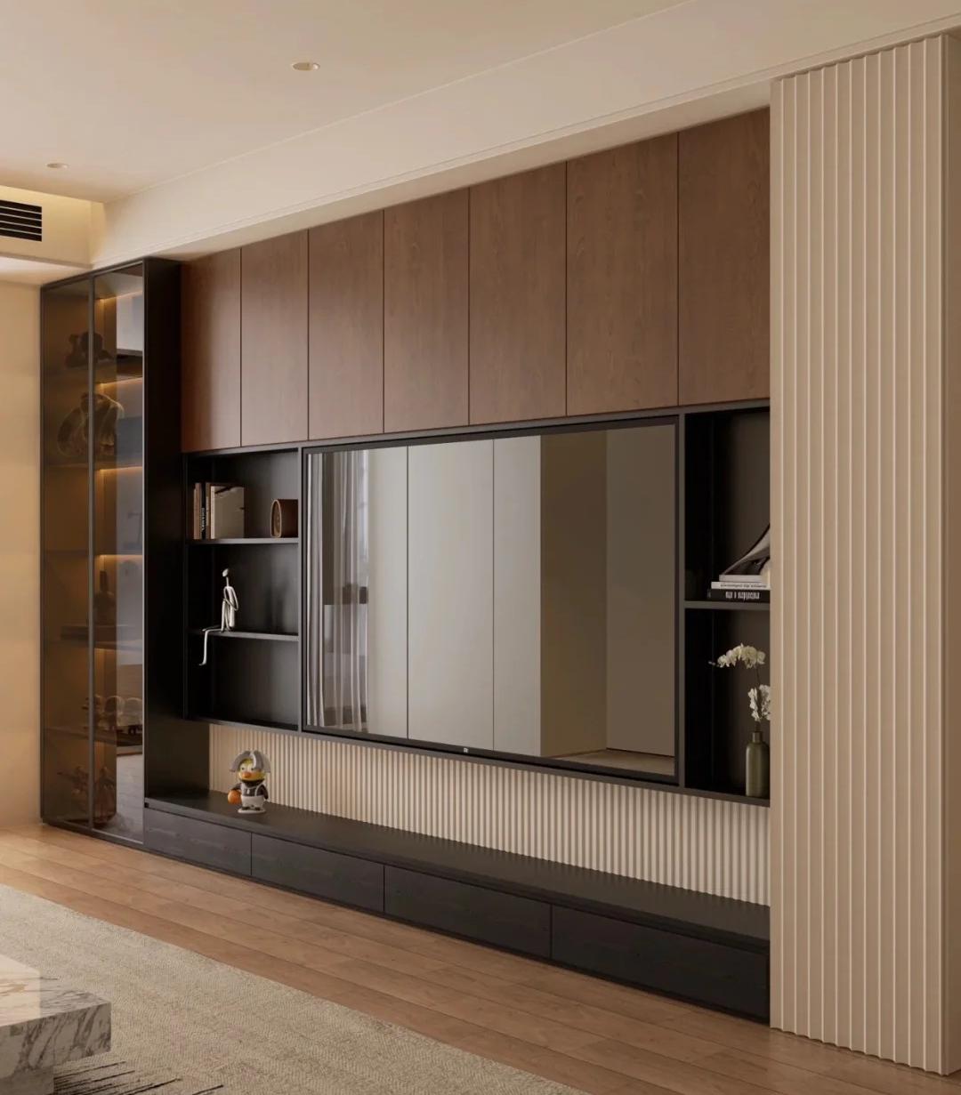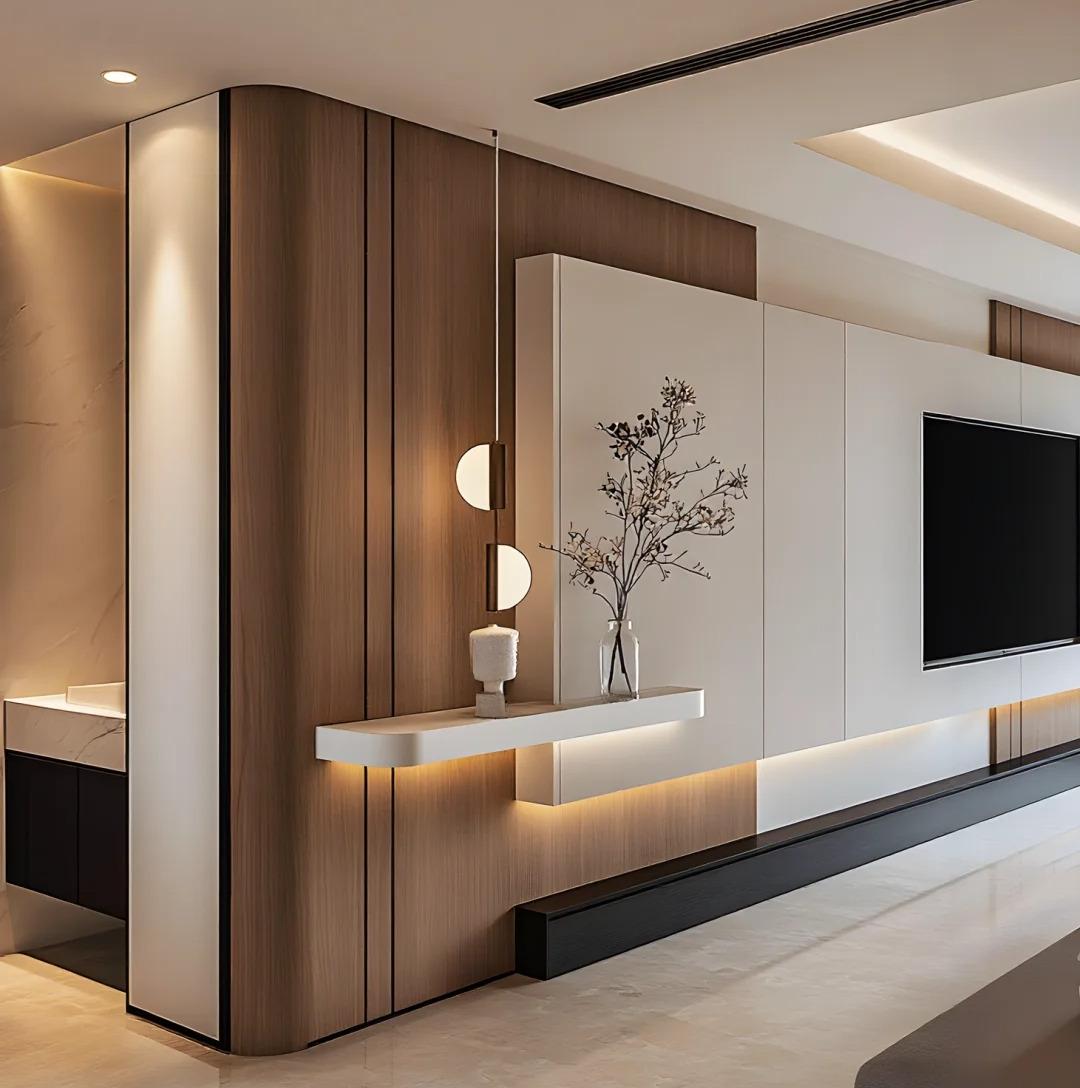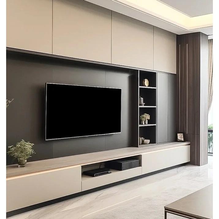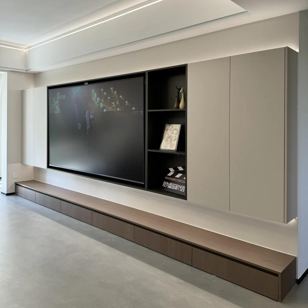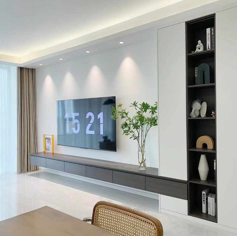 2. 风格适配:电视柜风格需与客厅整体装修风格统一,例如现代简约风多用直线条+哑光面板,新中式风可选实木+格栅元素,轻奢风搭配金属拉手或玻璃柜门。
