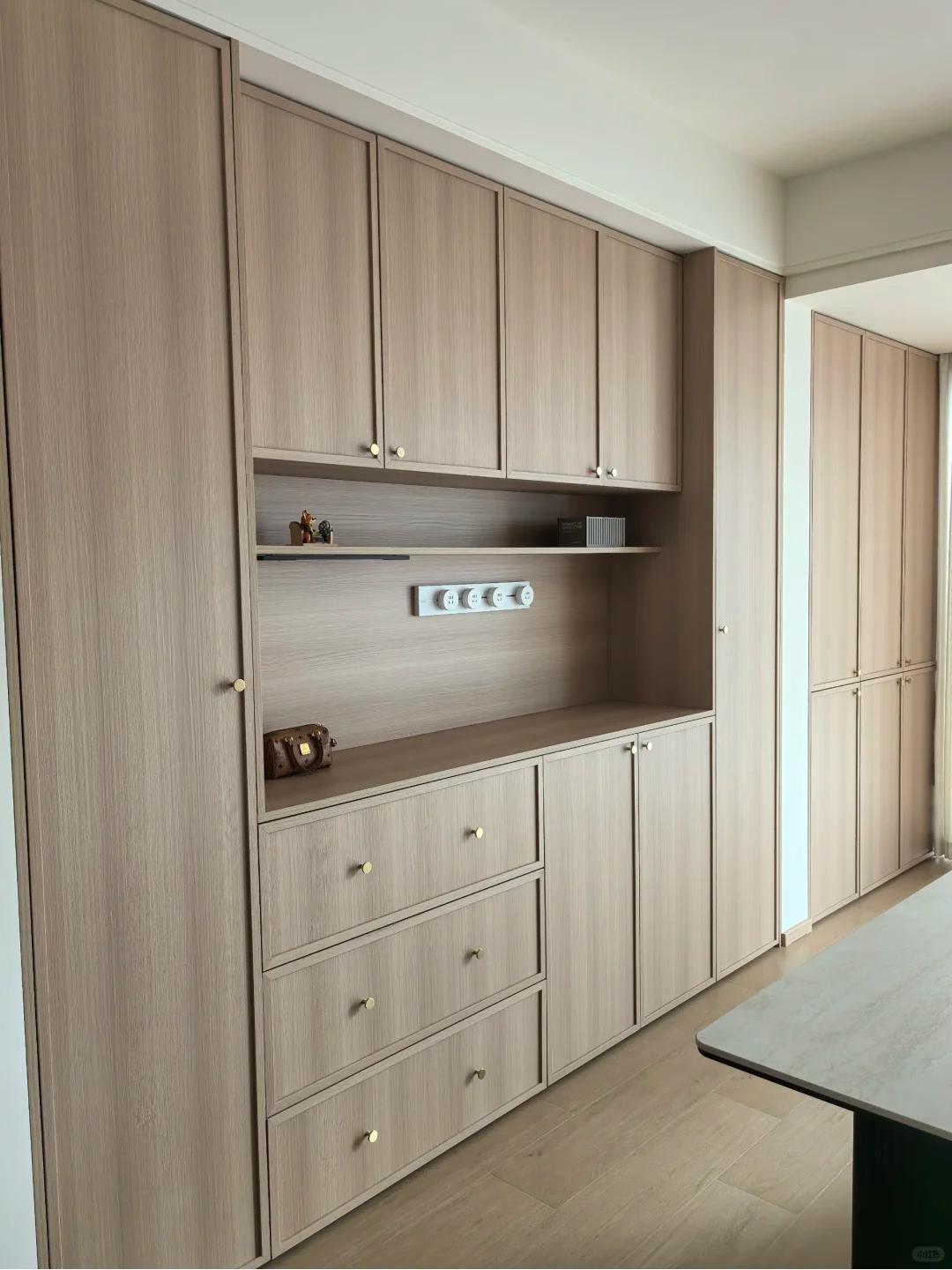 功能实用,分区合理,封闭柜 + 开放格 + 抽屉兼顾收纳与展示,可放餐具、小家电、酒水。
