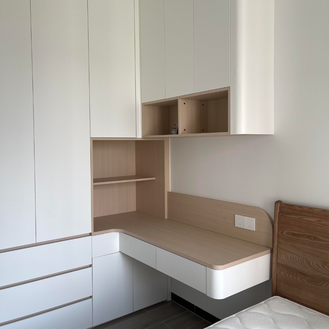 辅色:奶白、米白、浅灰、亚麻色(≤2 种,用于门板、封板、开放格背板,平衡木色厚重感)
