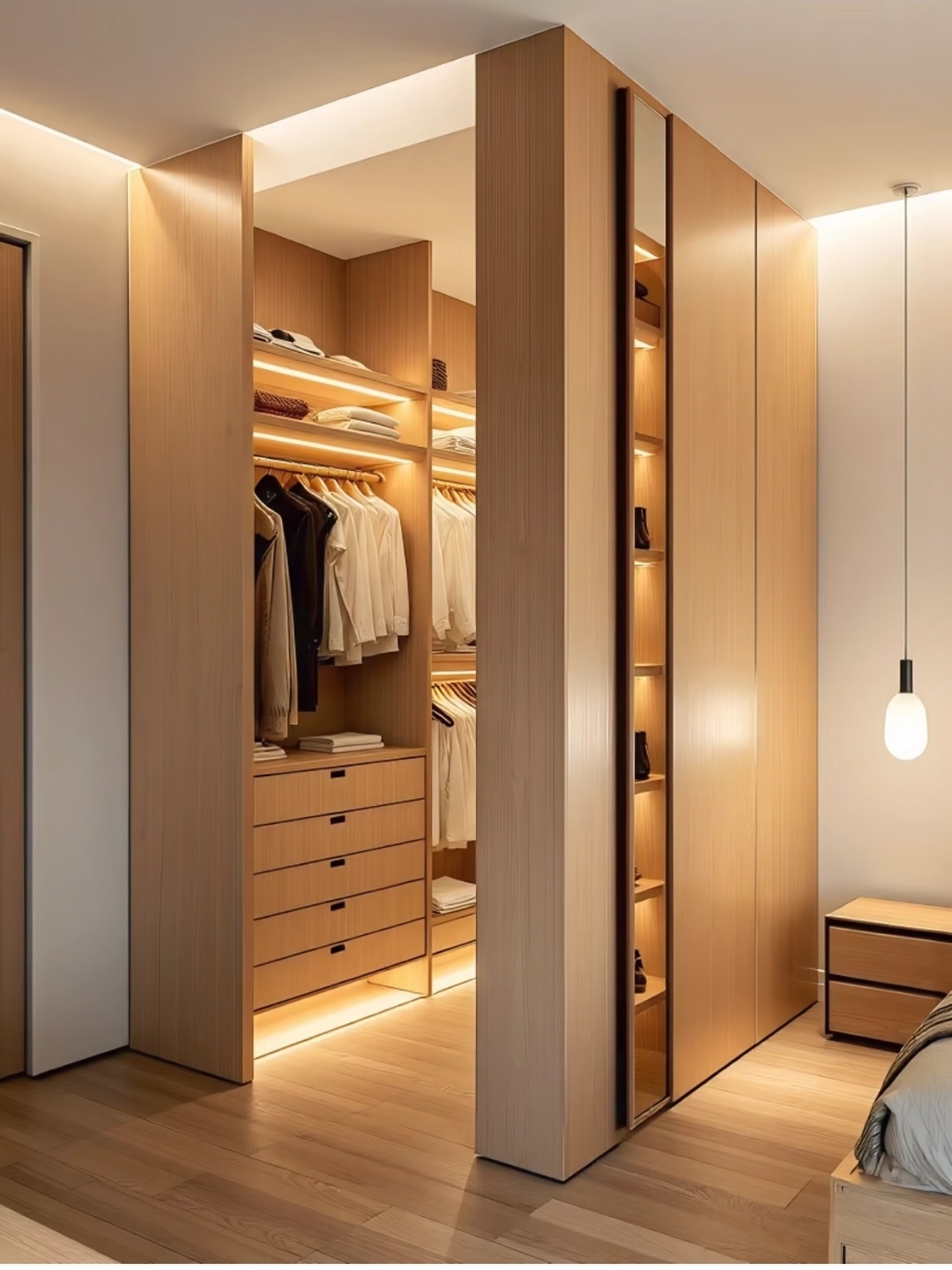 原木风衣柜设计核心要求(自然温润 + 实用耐看 + 环保质感)