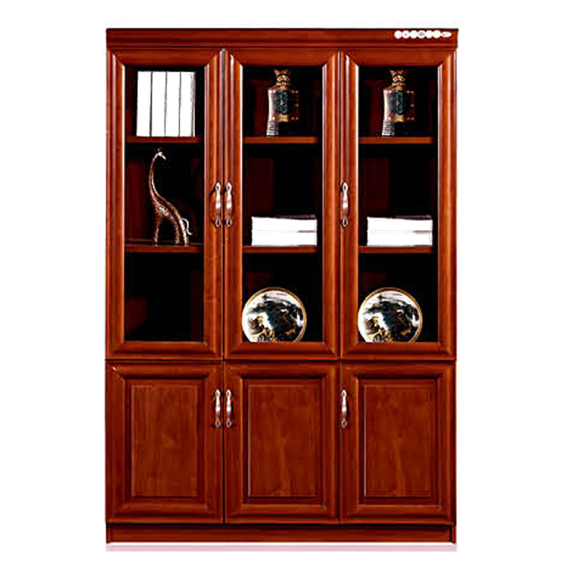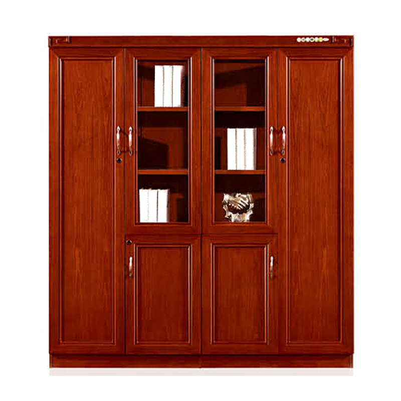 红棕色实木贴皮纹理,经典中式线条,既是文件收纳柜,也是办公室的颜值担当,适配老板室、高管区、接待室,提升整体商务质感。