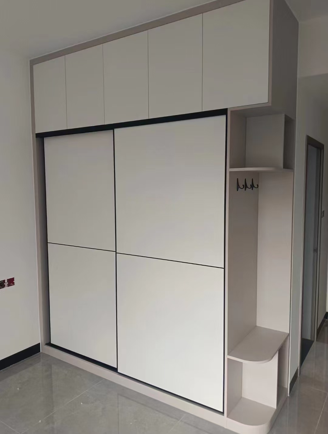 铝框移门衣柜相比平开门,不占走道空间,拿取衣物同样方便,窄小过道的福音,小户型也能放心使用。内部多种格局:挂衣区、叠放区、被褥区等,满足不同的需求。